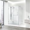 Bring your modern bathroom vision to life with the VIGO Monteray Frameless Shower Enclosure. Solid 3/8 in. tempered glass combined with stainless steel and solid brass construction makes this enclosure reliable and long-lasting. The sleek, outward-opening door features a convenient towel bar. A single water deflector along the bottom seal strip redirects water back into the shower to keep your bathroom dry and pristine. This model comes complete with an easy-to-clean, left-draining, white shower base.