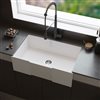 VIGO presents Matte Stone Square Front Farmhouse Kitchen Sink. Its modern design with premium materials makes this kitchen set a lasting component of your home. VIGO's proprietary Matte Stone material enables the sink to be stain and chip resistant. This kitchen sink features a reversible front design, allowing either a flat-front or slotted-front installation. The set is complete with a strainer and a cutting board.