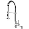 The pull-down, dual action spray head on the VIGO Edison Pull-Down Spray Kitchen Faucet allows for your choice of aerated flow or powerful spray for all your modern kitchen needs. The 360° swivel spout extends up to 30 inches, and its spiral details and solid brass construction make it a highly functional and beautiful statement piece. With a matching chrome soap dispenser, this kitchen faucet is styled and convenience at its finest.