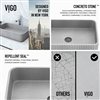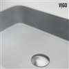 The VIGO Windsor vessel sink brings modern style to your bathroom with its sleek gray finish and distinctive design. Measuring 21-in. L x 14-in. W x 5-in. H, this rectangular sink features an eye-catching ribbed exterior that adds visual interest and texture. The smooth interior basin contrasts nicely with the textured outer surface, creating a balanced look. Crafted from durable ConcretoTM material, this sink resists scratches and stains while being easy to clean and maintain. Its neutral gray color and versatile shape allow it to complement a variety of bathroom styles, from contemporary to transitional. The vessel design sits atop the counter, making a stylish statement. This sink's material and construction offer excellent durability and hygiene benefits, with a non-porous surface that inhibits bacterial growth. Its above-counter installation provides flexibility in bathroom layouts and pairs well with various faucet styles.
