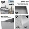 Elevate your bathroom's aesthetic with the VIGO Orvieto collection, featuring a stunning 24-in. L X 15-in. W vessel sink and coordinating Sterling faucet. This contemporary bathroom sink set showcases a sleek, rectangular design crafted from our proprietary ConcretoStone TM material in an elegant ash gray hue. The non-porous, solid-core construction resists chips and stains, ensuring a smooth and durable surface that will maintain its beauty for years to come. Paired with a sophisticated 11-in. tall faucet in a brushed nickel finish, this bathroom sink combo creates a cohesive and stylish look. The minimalist design of both the sink and faucet complement a variety of bathroom decor styles, from industrial to modern farmhouse. This vessel sink set offers the perfect balance of form and function, with its generous basin size and easy-to-clean surface.