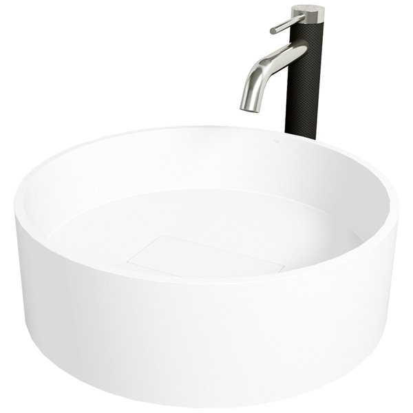 • MATTE STONE™: With its sleek matte white finish and durable construction, this bathroom sink provides a beautiful focal point for any bathroom.