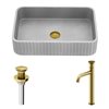 - STYLISH LOOK: The ribbed ash gray sink perfectly complements the sleek matte brushed gold faucet, creating a harmonious blend of texture and sophistication.