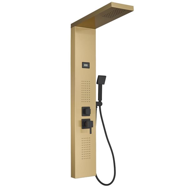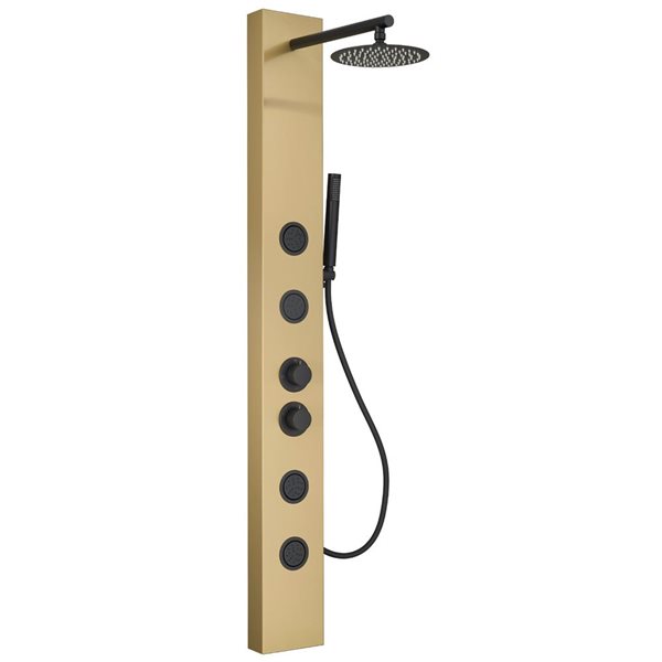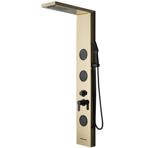 Relaxing, revitalizing and refreshing, The Bowery by VIGO is an exceptional shower panel with a tub filler that creates a spa-like shower experience. Inspired by the sleek architecture of New York City, it features a smooth 7-layer finish and circular details. Intelligently engineered for full coverage, optimal water pressure and targeted hydrotherapy, it delivers an exceptional full-body rinse, relieves pain, muscle tension and reduces stress. This shower wall panel provides more pressure and water coverage than traditional showers using less water. Smartly engineered, this unique shower panel system is equipped with a waterfall shower head, four body jets, a tub filler and a hand shower. Its DIY installation makes transforming your bathroom quick and easy.