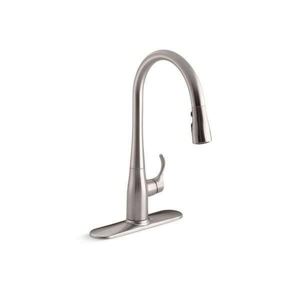 • Power stream main faucet: This eco-friendly faucet features a 1.8 gpm spout for water conservation, splash-free aerator for steady flow, ergonomic side sprayer, and DockLock™ system for easy storage
