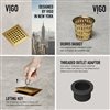 Enhance your shower space with this high-quality matte brushed gold shower drain from VIGO. Its premium stainless steel hardware with a 7-layered finish withstands wear & tear, keeping the drain pristine for years. Its square grid pattern gives your shower floor a unique, urban aesthetic. The simple instructions allow for an easy DIY-style installation at home.
