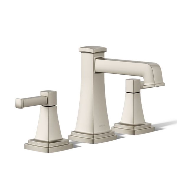 • Widespread design: Modern widespread three-piece bathroom faucet with a sleek, curved spout and two separate Y-shaped handles in a brushed nickel finish, for a luxurious look