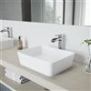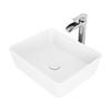 VIGO Marigold 14-in W x 18-in L White Matte Stone Rectangle Vessel Bathroom Sink with Niko Faucet/Drain - Chrome