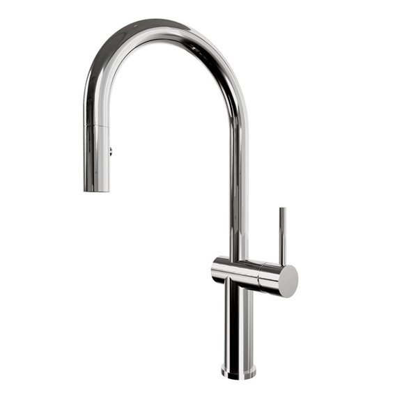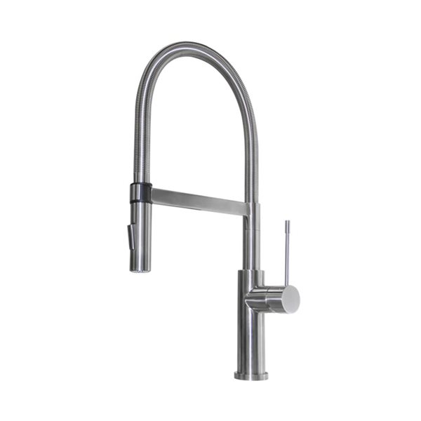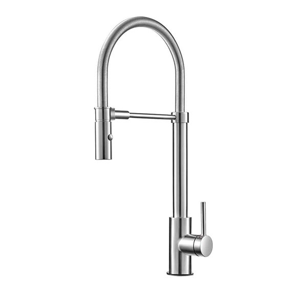 A retractable spout with a 30-in extendable hose is cleverly concealed in the VIGO Gramercy Pull-Down Kitchen Faucet. High-end in looks as well as feel, the Gramercy is just what you've been looking for. It is both modern and minimalist in design. The Gramercy features clean lines and a dramatically high arch for added style. Made from solid brass construction and featuring a corrosion-resistant finish, the Gramercy is a pull-down kitchen faucet built to last.