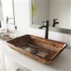 Crafted from premium, kiln-fired tempered glass, the VIGO Golden Greek Glass Vessel Bathroom Sink is ideal for everyday use. This sink features polished interior and textured exterior are stain-resistant and easy to clean. With a unique pattern in rich gold and dark sienna invoking Greek-style art and a modern rectangular shape, this sink is eye-catching in the best of ways.