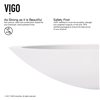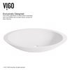 The VIGO Wisteria vessel sink showcases VIGO's commitment to modern bathroom design. This sleek, low-profile sink measures 23-in. L x 14-in. W x 4-in. H, featuring a smooth matte white finish that adds a touch of elegance to any bathroom. Its oval shape creates a striking focal point while offering versatility for various decor styles. Crafted from durable MatteStoneTM, this sink resists scratches and stains, making it both beautiful and practical for daily use. The non-porous surface is easy to clean and naturally inhibits bacterial growth, promoting better hygiene. This vessel sink sits atop the counter, adding visual interest and a premium look to your bathroom. It pairs well with a wide range of countertop materials and complements both traditional and contemporary bathroom designs. The VIGO Wisteria combines form and function, offering a spacious basin for everyday use while maintaining a stylish appearance.