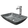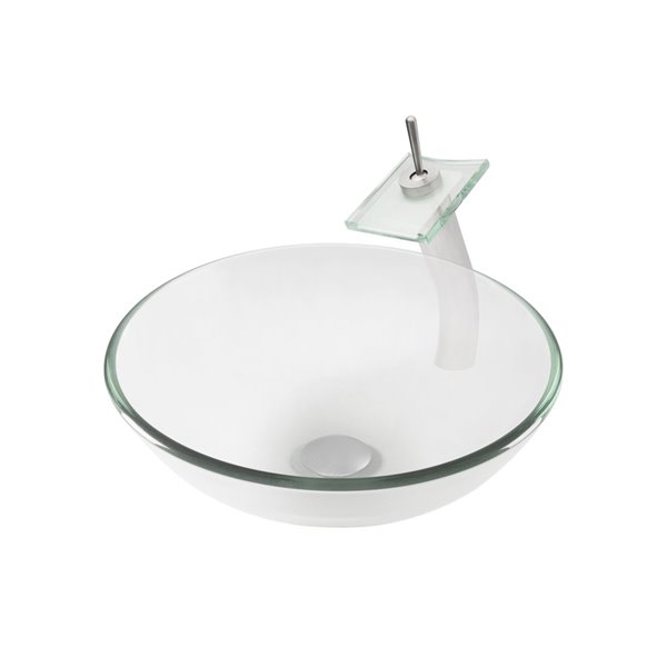 Lustrous and incredibly durable, the VIGO Titanium Glass Vessel Bathroom Sink and Niko Vessel Bathroom Faucet Set epitomizes strength. Just as titanium resists the natural corrosion of sea water, so too does this faucet's solid brass construction. The sink is built from safe tempered glass to protect against dangerous breakage. The faucet is sleek and optimally functional, with a 500,000-use tested sedal ceramic disk cartridge. The set is made complete with an included pop-up drain in a matching finish.