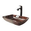 VIGO Glass 13-in W x 18-in L Russet Rectangle Vessel Bathroom Sink with Linus Faucet/Drain - Antique Rubbed Bronze