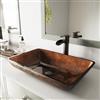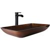 VIGO Glass 15-in W x 23-in L Rectangle Russet Vessel Bathroom Sink with Niko Faucet/Drain - Antique Rubbed Bronze