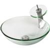 - Solid brass and tempered glass construction makes this faucet durable and easy to clean