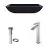VIGO Glass 13-in W x 18-in L Blue Rectangle Vessel Bathroom Sink with Duris Faucet and Pop-Up Drain - Brushed Nickel