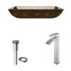 VIGO Glass 15-in W x 22-in L Rectangle Copper Vessel Bathroom Sink with Duris Faucet/Drain - Brushed Nickel