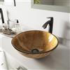 VIGO Glass 17-in dia. Brown Round Vessel Bathroom Sink with Linus Faucet/Drain - Antique Rubbed Bronze