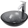 With its circular silhouettes The Sheer Black Glass Vessel Bathroom Sink Set with Duris Vessel Faucet by VIGO emphasizes bathroom design structure. Sheer black glass adds a handsome hue to chrome finished solid brass hardware. The single handle bathroom faucet delivers an exceptional flow of water. The included popup drain ensures complete drainage and prevents water from pooling. A mix of high-quality materials provides a unique update for bathroom décor. Artistically inclined, this set promises a spa-like experience that inspires tranquility.