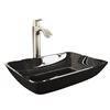 VIGO Glass 13-in W x 18-in L Onyx Rectangle Vessel Bathroom Sink with Linus Faucet and Pop-Up Drain - Brushed Nickel