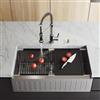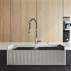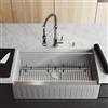 Elevate your kitchen's functionality and style with the VIGO Oxford farmhouse apron-front single-bowl Stainless Steel sink and VIGO Edison kitchen faucet combo. This sleek sink, measuring 36 in. L X 21 in. W X 10 in. D, boasts a spacious single bowl design perfect for handling large pots and pans. The sink's built-in ledge allows you to slide a cutting board or rollup rack across, enhancing your food prep area. The front of the sink features elegant grooves, adding a touch of sophistication to your kitchen. Paired with the 19 in. H Chrome kitchen faucet, this set offers both practicality and visual appeal. The faucet's high-arch spring design provides ample clearance for filling tall containers, while its pull-down spray head ensures easy cleaning. Crafted from durable stainless steel, this combo promises long-lasting performance and effortless maintenance.