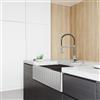 - STYLISH LOOK: The contemporary farmhouse sink with fluted front, combined with its industrial faucet and sleek black drainboard, offers a striking blend of modern and rustic aesthetics.