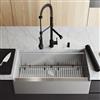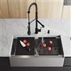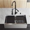VIGO makes multitasking cooler than ever with the Oxford Kitchen Workstation and Zurich Pull-Down Spray Faucet Set. The sink is a 304 stainless steel, 16-gauge model, undercoated with SoundAbsorbTM technology to minimize noise and prevent condensation. The Oxford sink's inner ledge holds a removable antibacterial black cutting board and roll-up silicone drying rack. Complementing the sink is the Zurich Pull-Down Spray Kitchen Faucet. Built from solid brass, this faucet features a unique comfort-grip handle to aid the 28 inches of pull-down extension. A matching in-counter soap dispenser holds hand/dish soap or hand lotion. Completing the set is a protective stainless steel bottom grid and stainless steel strainer. Classic, contemporary, and versatile, this set is made with you in mind.