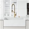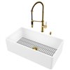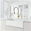 Classic design construction meets innovative technology with the Matte Stone Farmhouse Kitchen Sink Set with Livingston Faucet by VIGO. Taking inspiration from the industrial-chic design aesthetic, the faucet flaunts sleek coils and a pull-down hose. The construction of the sink adds a smooth texture to this exceptional kitchen sink set. Elegant in design and ergonomic in function, it seamlessly maximizes the form and functionality of your kitchen. The set is complete with a matching soap dispenser, a chrome strainer and a strainer with matching faucet finish.