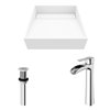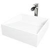 A mix of materials and silhouettes adds a naturally comforting element to any bathroom with The Starr Square Matte Stone Sink Set by VIGO. Handcrafted with VIGO’s proprietary MatteStone material, the vessel sink provides lasting durability with a solid to the core composite. The Niko single handle vessel bathroom faucet adds a touch of elegance with a premium chrome hardware finish and a cascading waterfall spout. The included pop-up drain with coordinating finish and mounting ring completes this bathroom sink with a faucet set and ensures seamless draining.