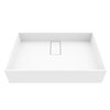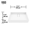 The VIGO Bryant vessel sink boasts a sleek, modern design that elevates any bathroom. This rectangular sink measures 23-in. L x 15-in. W x 5-in. H, offering a spacious basin with clean lines and a minimalist aesthetic. The matte white finish provides a contemporary look that complements various decor styles. Crafted from durable MatteStoneTM, this sink resists scratches and stains, ensuring long-lasting beauty and easy maintenance. The smooth surface is not only visually appealing but also promotes better hygiene by preventing bacteria growth. A standout feature is the slim, integrated drain cover that blends seamlessly with the sink's design, creating a cohesive and refined appearance. This vessel sink sits atop the countertop, making a bold statement while offering versatility in installation. It pairs well with a wide range of faucet styles and bathroom fixtures, allowing for customization to suit your taste.