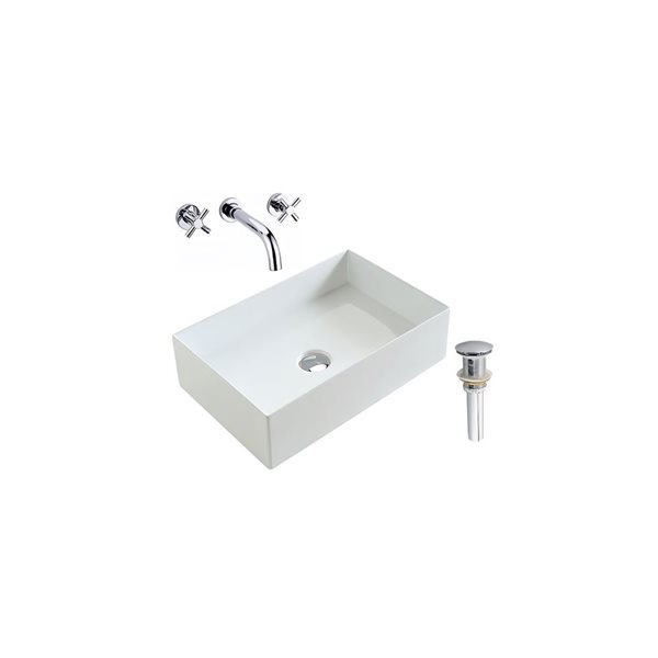 VIGO Starr 13-in W x 17-in L White Matte Stone Rectangular Bathroom Vessel with Gotham Faucet/Drain - Chrome