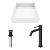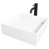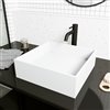 VIGO Montauk 15-in White Matte Stone Square Vessel Bathroom Sink with Lexington Faucet/Drain - Matte Black