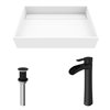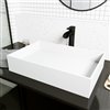 VIGO Montauk 15-in W x 23-in L White Matte Stone Rectangle Vessel Bathroom Sink with Niko Faucet/Drain - Matte Black