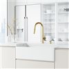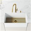 VIGO beautifully marries form with function to create an exceptional kitchen experience with the Matte Stone farmhouse kitchen sink set. The pull-down kitchen faucet adds luxury and multifunctionality, making cooking, cleaning, and washing convenient. This kitchen set is fully equipped with coordinating accessories, including a matching soap dispenser, strainer and silicone sink grid.