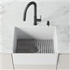 - ALL-IN-ONE SET: VIGO’s Matte Stone Farmhouse Kitchen Sink material is flawless in design. The set includes a silicone protective sink grid, a cutting board, and a strainer (faucet not included).