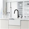 VIGO presents Matte Stone Single Bowl Flat Farmhouse Apron-Front Kitchen Sink. Its modern design with premium materials makes this kitchen set a lasting component of your home. It features a reversible front design, allowing either a flat-front or slotted-front installation. VIGO's proprietary Matte Stone material enables the sink to be stain and chip-resistant. The set is complete with a Strainer and a Silicone Grid.
