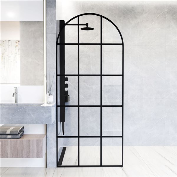 VIGO Arden 34-in W x 78-in H Framed Fixed Clear Glass Shower Screen - Matte Black