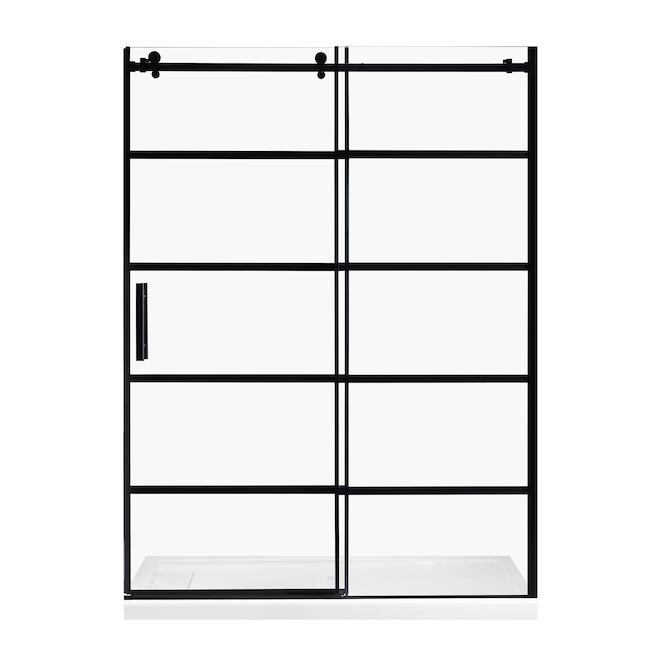 • Dimensions: 56-60-in W, 74-in H, frameless sliding door in matte black, matte gold, chrome, stainless steel finishes, with 4-in adjustability and reversible installation for easy entry