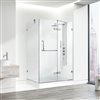 • CORNER SHOWER KIT: Premium corner shower with 36" L X 36" W X 79" H hinged glass, available in chrome or brushed nickel finishes, textured acrylic base, 23" walk-through entry.