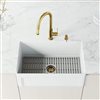 Add a touch of industrial design to your kitchen sink design with a beautiful pull down kitchen faucet from the Hart collection. Inspired by Brooklyn architecture, the hexagon-shaped silhouette serves as a striking element in any space. Crafted with both beauty and function in mind, the high arc spout offers plenty of space for washing and filling large pots or pans. The premium hardware finish provides exceptional durability and is consistent throughout the entire matte brushed gold kitchen faucet and included soap dispenser. The kitchen sink soap dispenser is a functional way to complete your chic sink design.