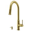 VIGO Hart Arched One-Handle Pull-Down Sprayer Kitchen Faucet with Soap Dispenser - Matte Brushed Gold