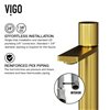• FAUCET DIMENSIONS: Sleek matte brushed gold faucet stands 12-in. H with a 5-in. spout reach, perfectly proportioned for the vessel sink.