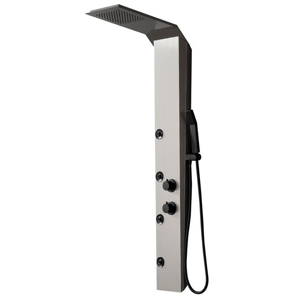 Fortify your health with The Orchid by VIGO, a shower panel system designed with your peace in mind. Designed with two massaging hydrotherapy jets, a square waterfall shower head, and a handheld shower, The Orchid goes beyond your expectations. The body jets work to ease tense muscles, while the overhead shower provides a soothing waterfall. Use the hand shower to target hard-to-reach areas with 58 inches of extended maneuverability from the hose. Shower panel installation is made easy with VIGO’s retrofit design that allows you to install the shower panel with your existing water controls. Experience a more soothing shower, The Orchid.