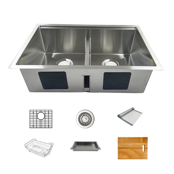 • WORKSTATION SINK: Double-bowl stainless steel farmhouse kitchen sink, 36-in. L x 21-in. W x 10-in. D. Provides ample workspace and flexibility for various kitchen tasks and installations.