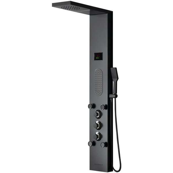 - DIMENSIONS: Measuring 59-in H X 6-in W, this wall-mounted matte black shower system stands out with its contemporary industrial aesthetic, instantly becoming the focal point of any bathroom.