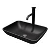 VIGO Glass 18-in L x 13-in W Rectangle Black Vessel Bathroom Sink with Ruxton Faucet/Drain - Matte Black