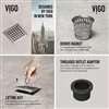Enhance your shower space with this high-quality brushed nickel shower drain from VIGO. Its premium stainless steel hardware with a 7-layered finish withstands wear & tear, keeping the drain pristine for years. Its square grid pattern gives your shower floor a unique, urban aesthetic. The simple instructions allow for an easy DIY-style installation at home.